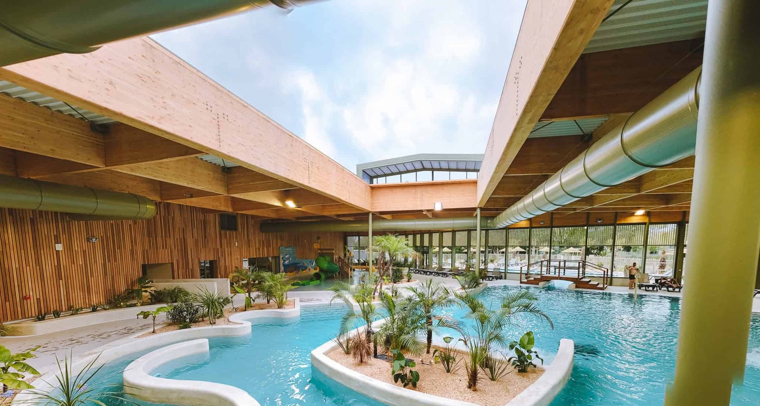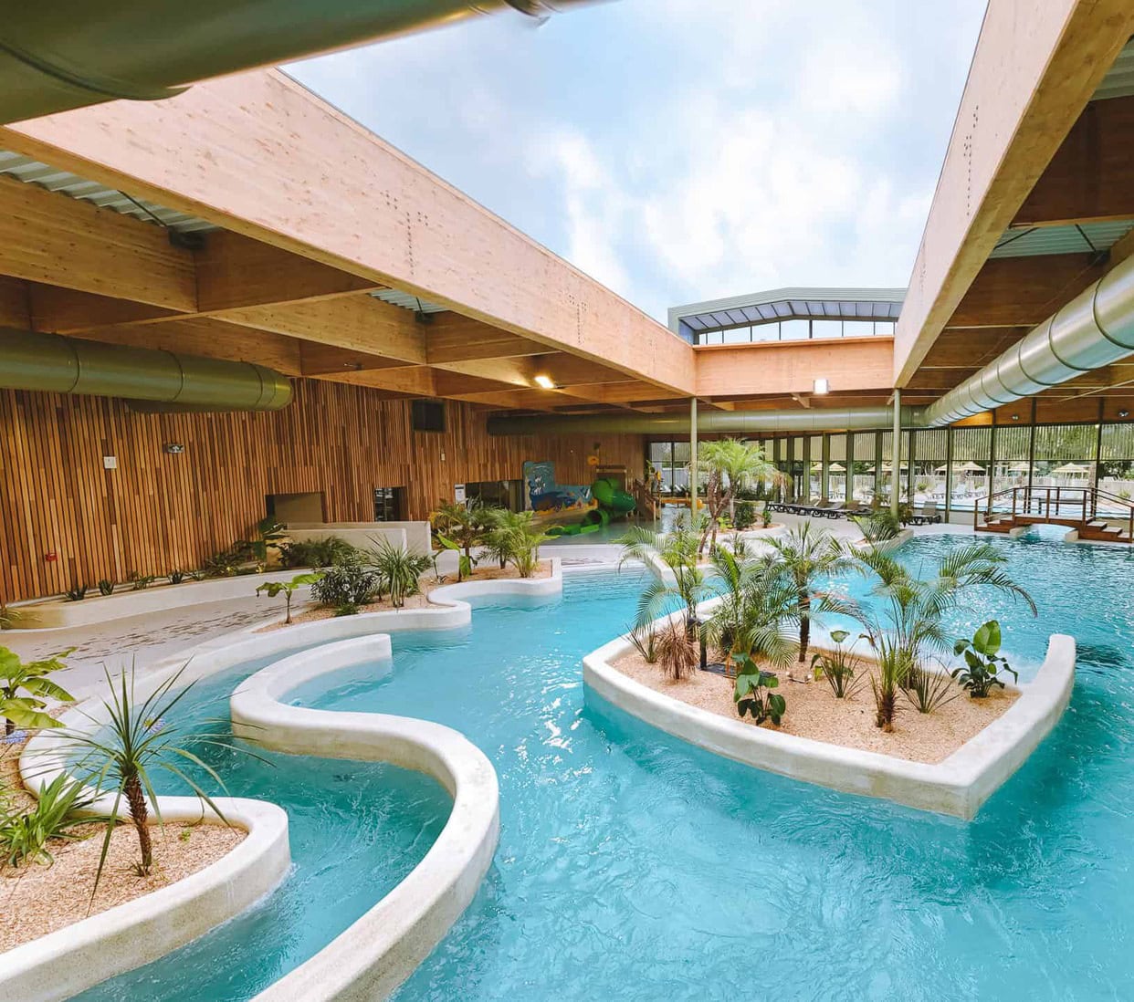 Vous pourrez vous prélasser dans un bain bouillonnant de 90m² ou dans les bassins ludiques intérieurs et extérieurs équipés de jets massant. Nagez à contre-courant dans la rivière, dévalez un toboggan en spirale de 48m et dépensez-vous dans un bassin nordique extérieur de 23m de long.